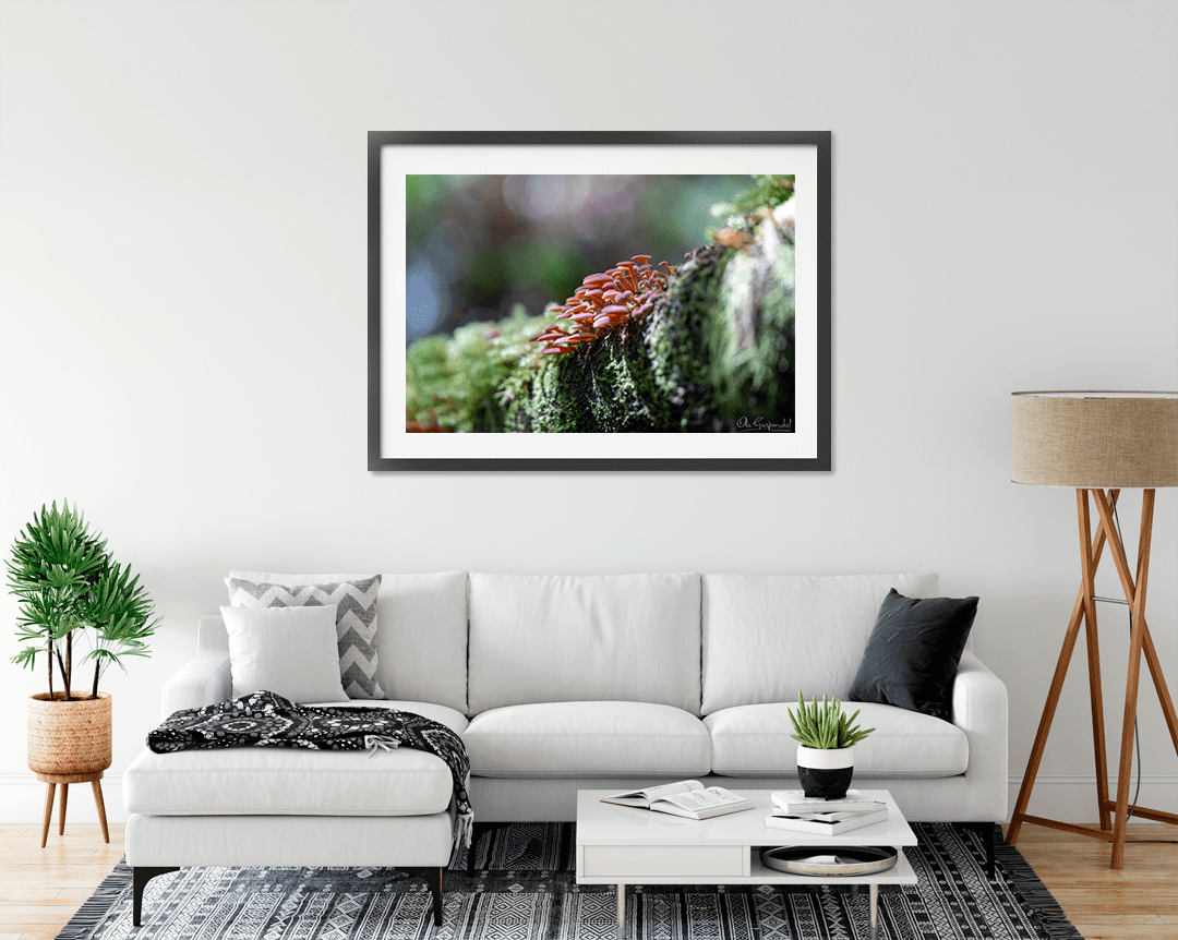Mushrooms on a log at Hogarth Falls, Strahan